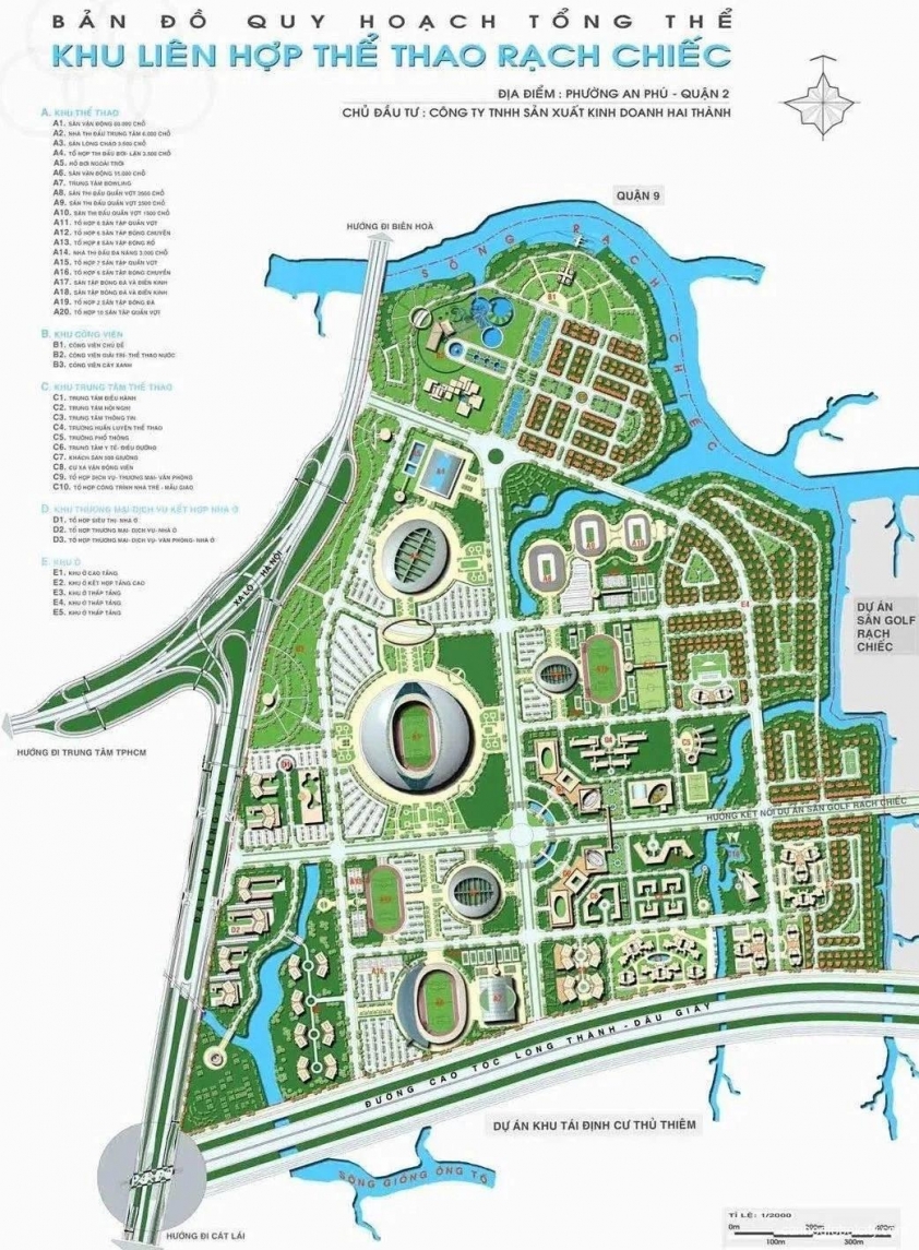 Rạch Chiếc体育综合区不仅仅是一座体育场,而是规划为一个集体育、文化和娱乐于一体的现代综合体,配备完善的设施。除了中心体育场外,还包括运动员村、赛事和活动中心、体育医疗及生物医学医院、多功能区、社区体育公园、城市停车场以及连贯的交通网络。