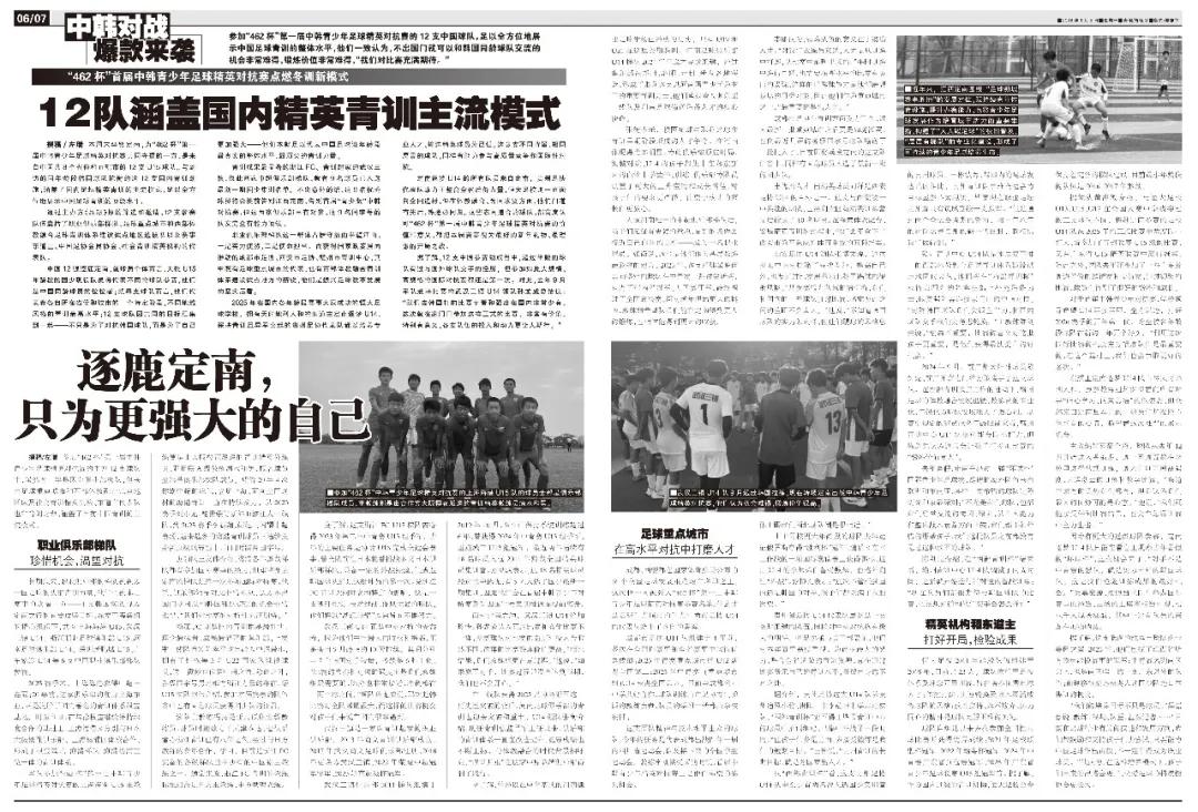 撰稿/左瑞 本周末,定南将作为“462杯”首届中韩青少年足球精英对抗赛的主场,迎接来自中国8个省市的12支U15球队。这些国内顶级青训劲旅与韩国同龄队伍较量,囊括了中国足球青训的主流模式,充分展示了中国青训的顶尖实力。