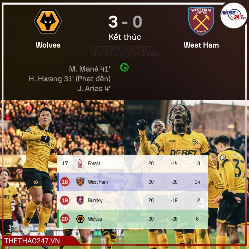 除了争夺前列名次外,本轮还见证了降级区的重要时刻。狼队 终于在本赛季首次赢得比赛,终结了连续20轮的连败和连平局面。虽然仍位居榜尾,但这场胜利被视为“狼队”保级战役中的重要精神激励。