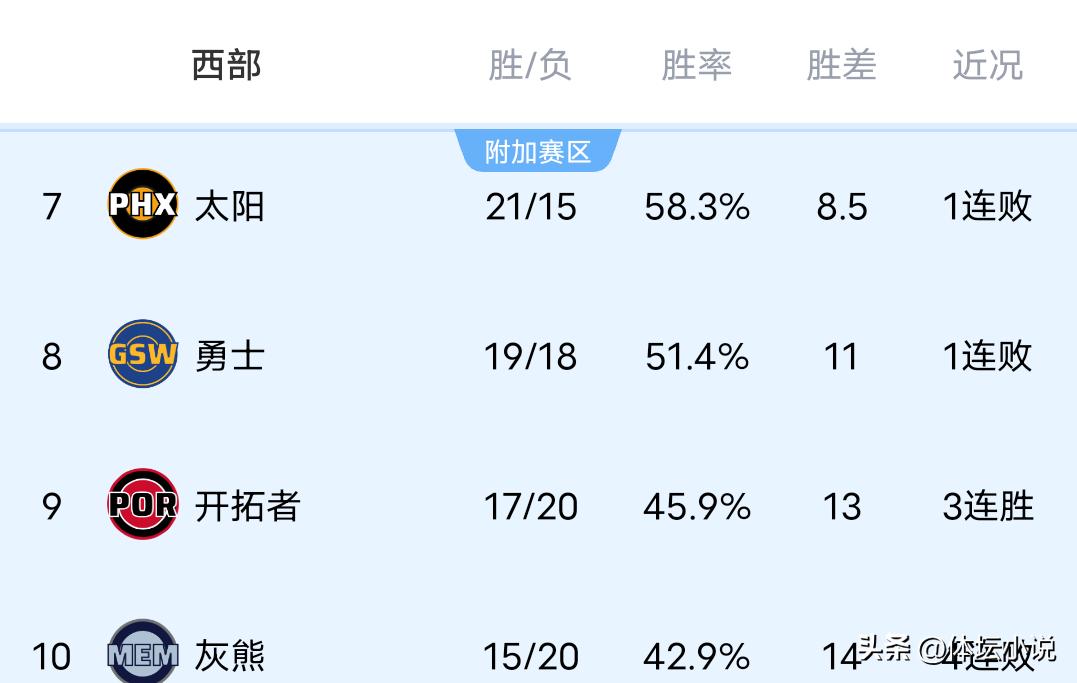 北京时间1月6日,NBA常规赛继续进行,几场比赛结束后,太阳以97-100被火箭绝杀,黄蜂以127-94爆冷击败卫冕冠军雷霆,掘金以125-124力克76人,勇士以102-103惜败快船,爵士以117-137惨败开拓者,西部最新排名出炉,雷霆遭遇两连败居首,掘金第四,火箭第五!