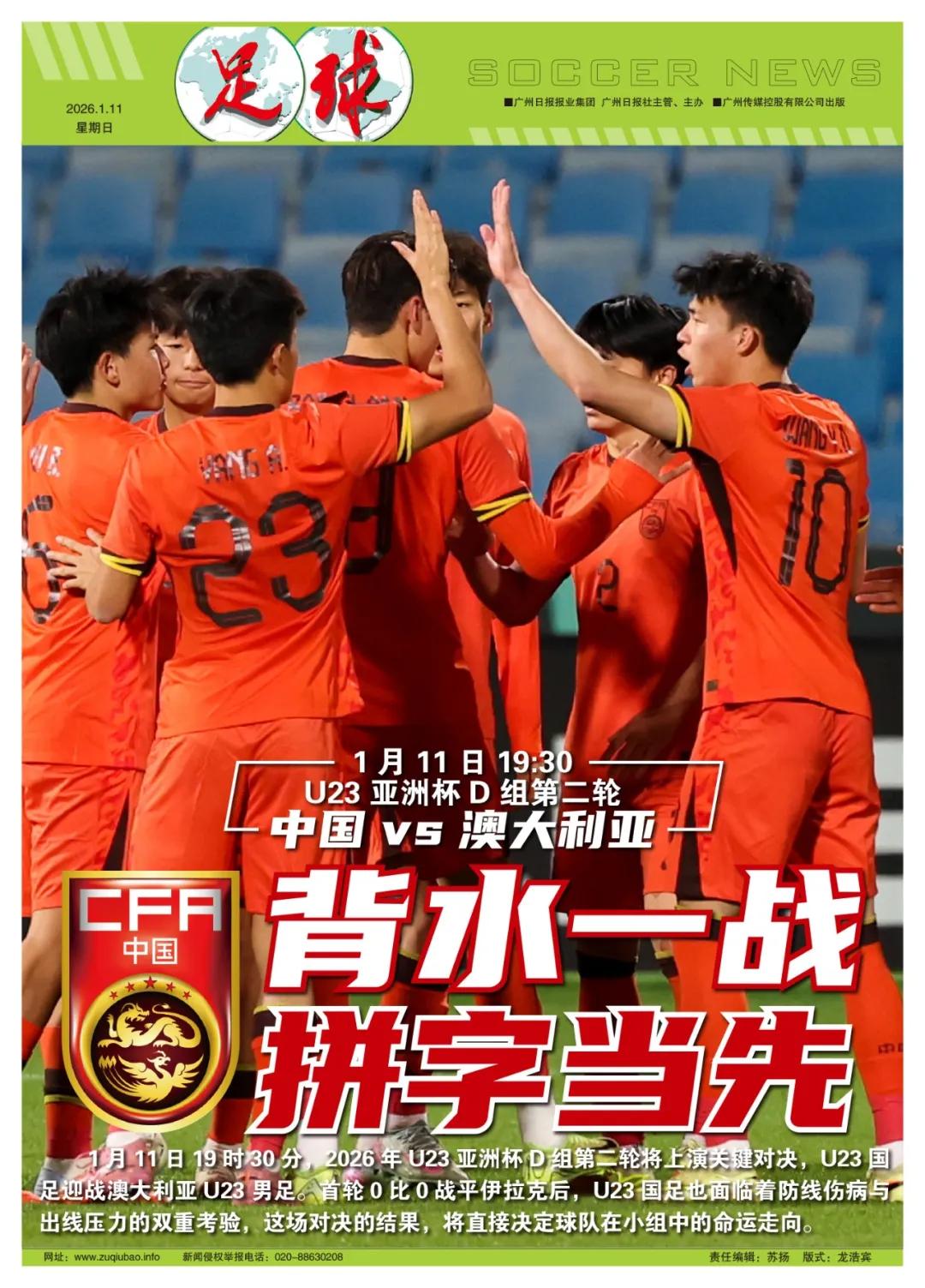 撰稿/鲁蜜、寒冰 1月11日19时30分,2026年U23亚洲杯D组第二轮将展开关键较量,U23国足对阵澳大利亚U23男足。首轮以0比0战平伊拉克后,U23国足同时面临防线伤病和晋级压力,这场比赛的结果将决定球队在小组赛中的走向。