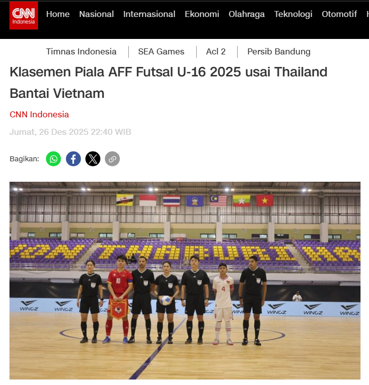 CNN印尼的报道甚至提出具体设想:越南完全可能以“8或9球的优势获胜”。若出现这种情况,而印尼输给泰国,印尼U16室内足球队将面临被淘汰的风险,尽管他们在赛事初期曾占有较大优势。