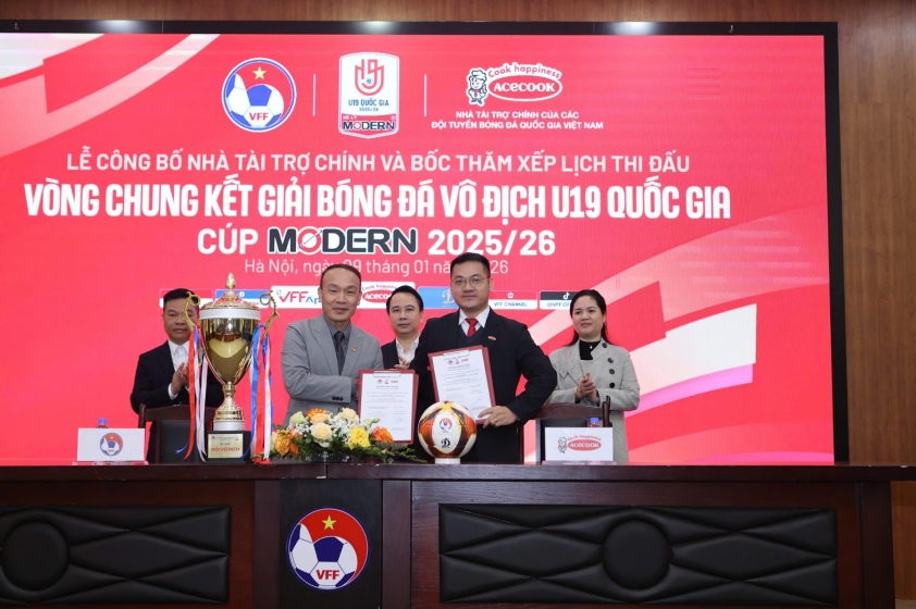 1月9日上午,在越南足球联合会,越南Acecook股份公司联合越南足球联合会(VFF)正式发布了首次以主要赞助商身份支持2025/26赛季全国U19足球锦标赛Modern杯决赛阶段的消息。