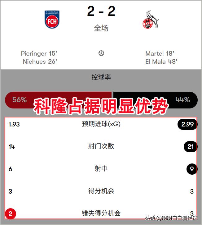 尽管如此,海登海姆在主场面对科隆,却没占到多少优势,甚至多方面处于劣势?